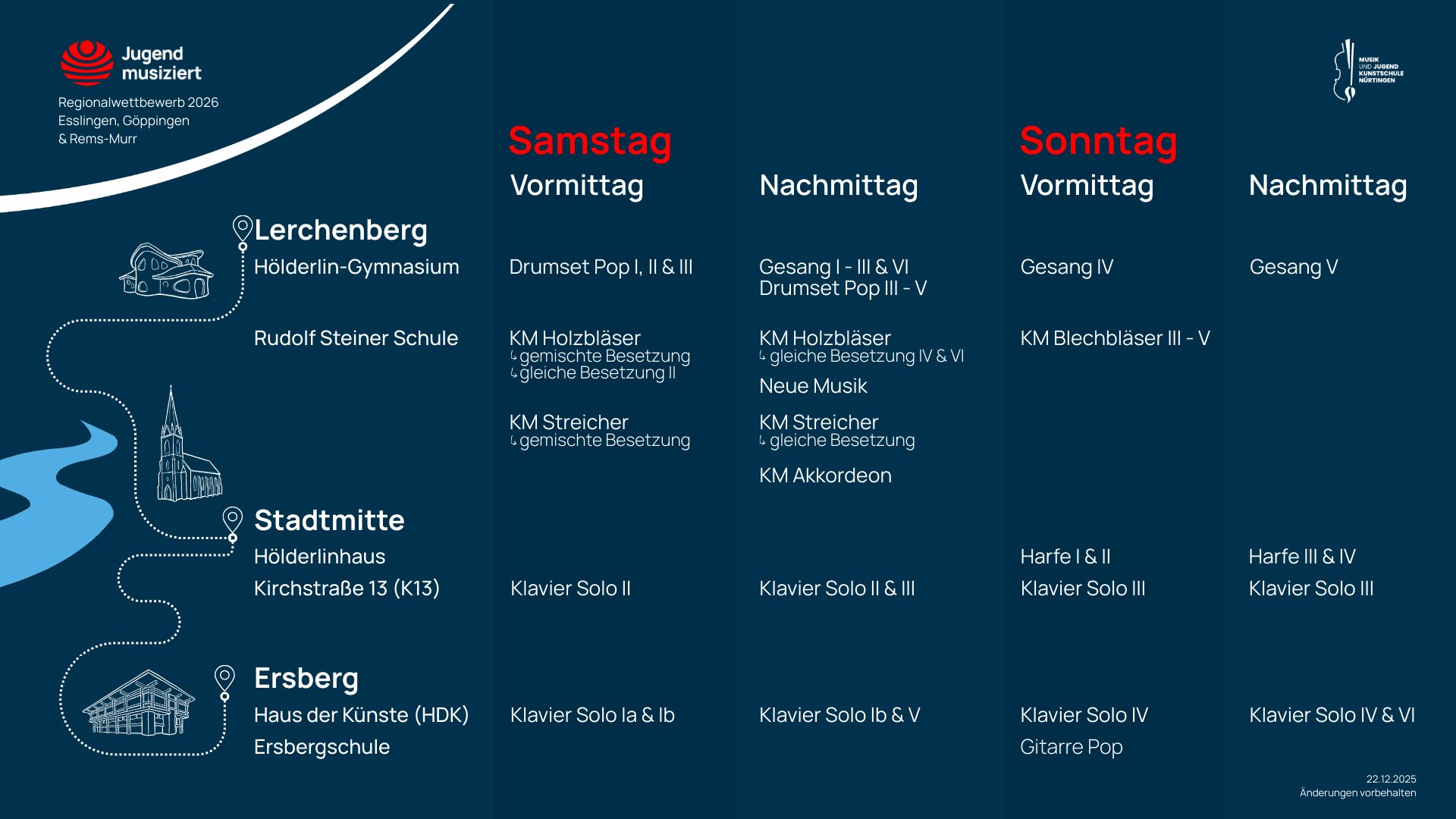 - Regionalwettbewerb: Sa., 31. Januar und So., 1. Februar 2026, Musik- und Jugendkunstschule Nürtingen
